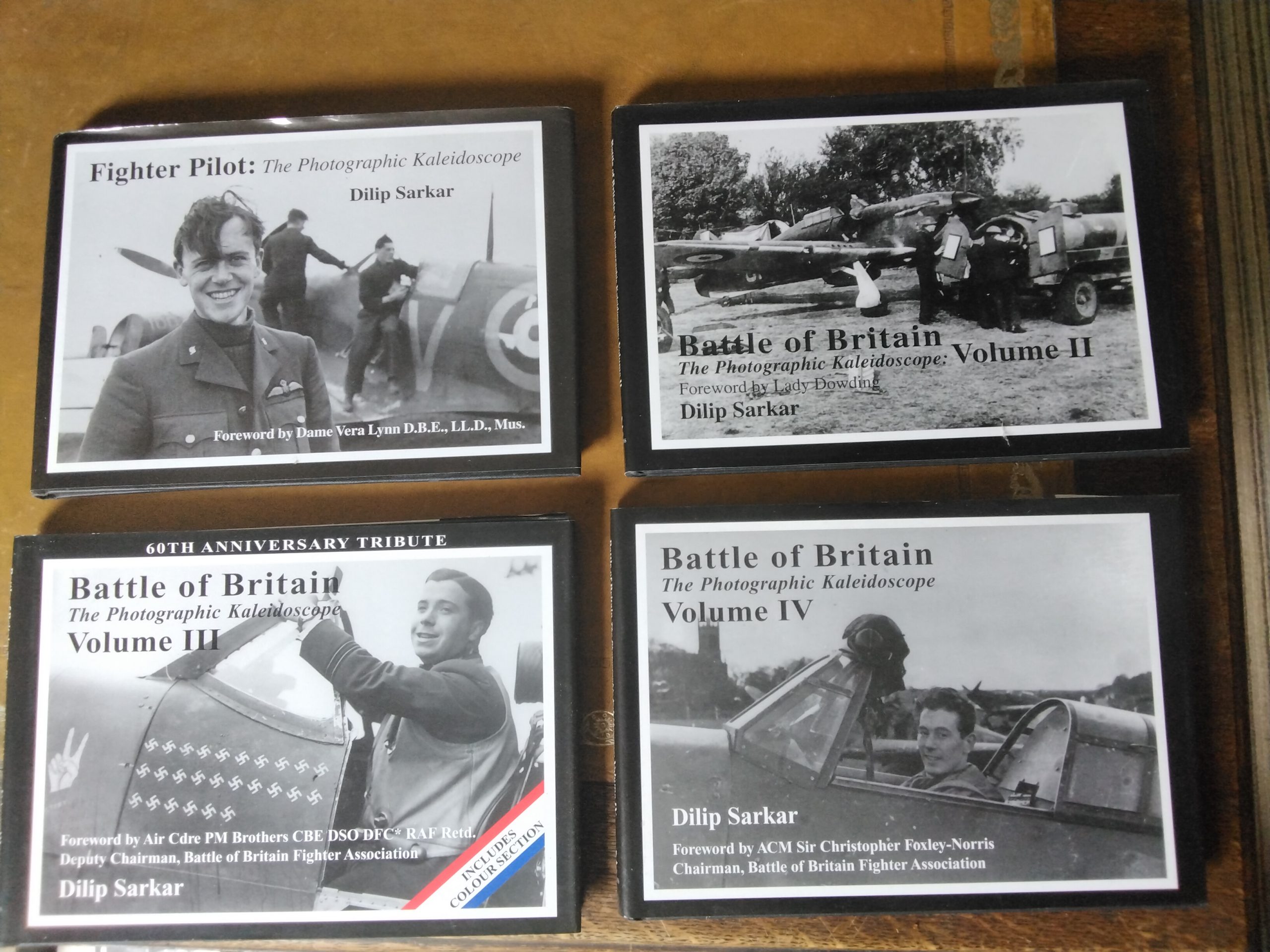 Fighter Pilot and Battle of Britain – The Photographic Kaleidoscope by Dilip Sarkar Complete 4 Volume Set – all hardback with dust covers published by Ramrod Publications Each book is signed by the Author