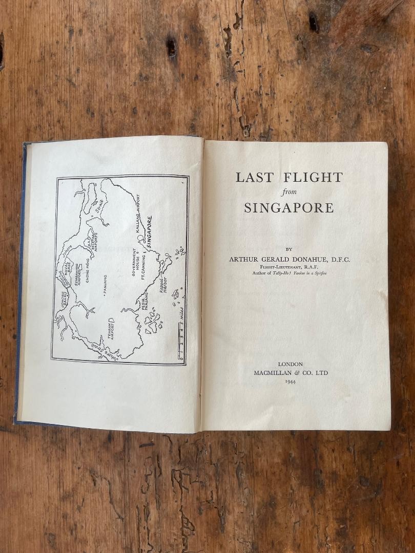 Last Flight from Singapore by F/Lt Arthur Gerald Donahue DFC Hardback first edition without dust cover published by Macmillan & Co Ltd 1944