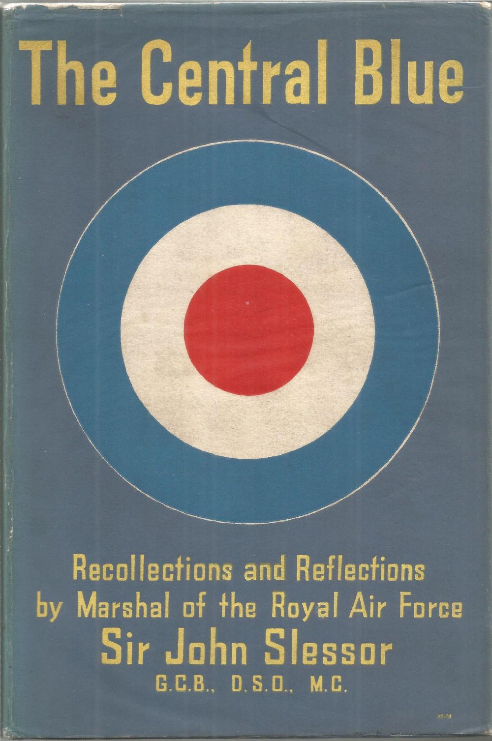 The Central Blue by Sir John Slessor G.C.B, D.S.O, M.C Hardback first edition with dust cover in a protective cover published by Cassell and Co Ltd 1956 There are signs of damp on the cover boards inside the dust cover hence the low price
