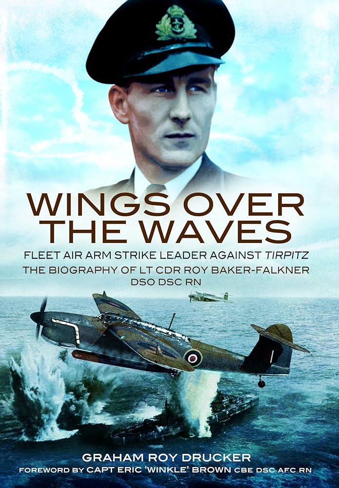 Wings over the Waves by Graham Roy Drucker Fleet Air Arm Strike Leader against Tirpitz – the Biography of Lt Cdr Roy Baker -Falkner DSO, DSC, RN Hardback with dust cover published by Pen and Sword Aviation 2010